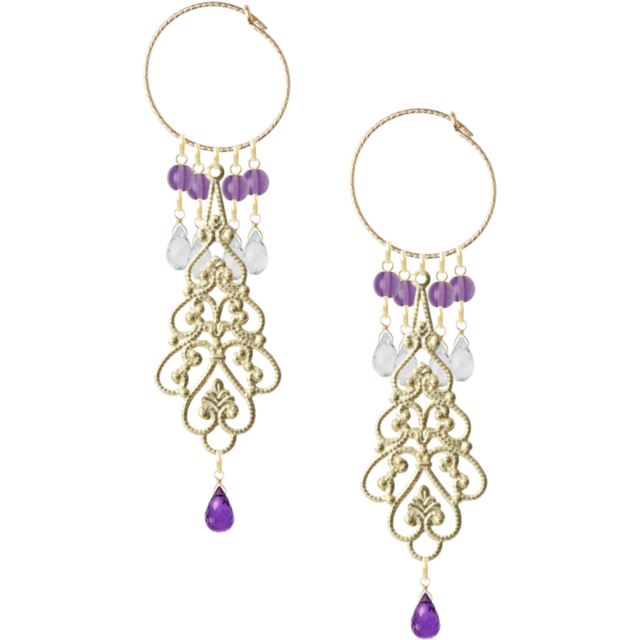 シズク型のスカシパーツをアメジストとアクアマリンで飾りました。