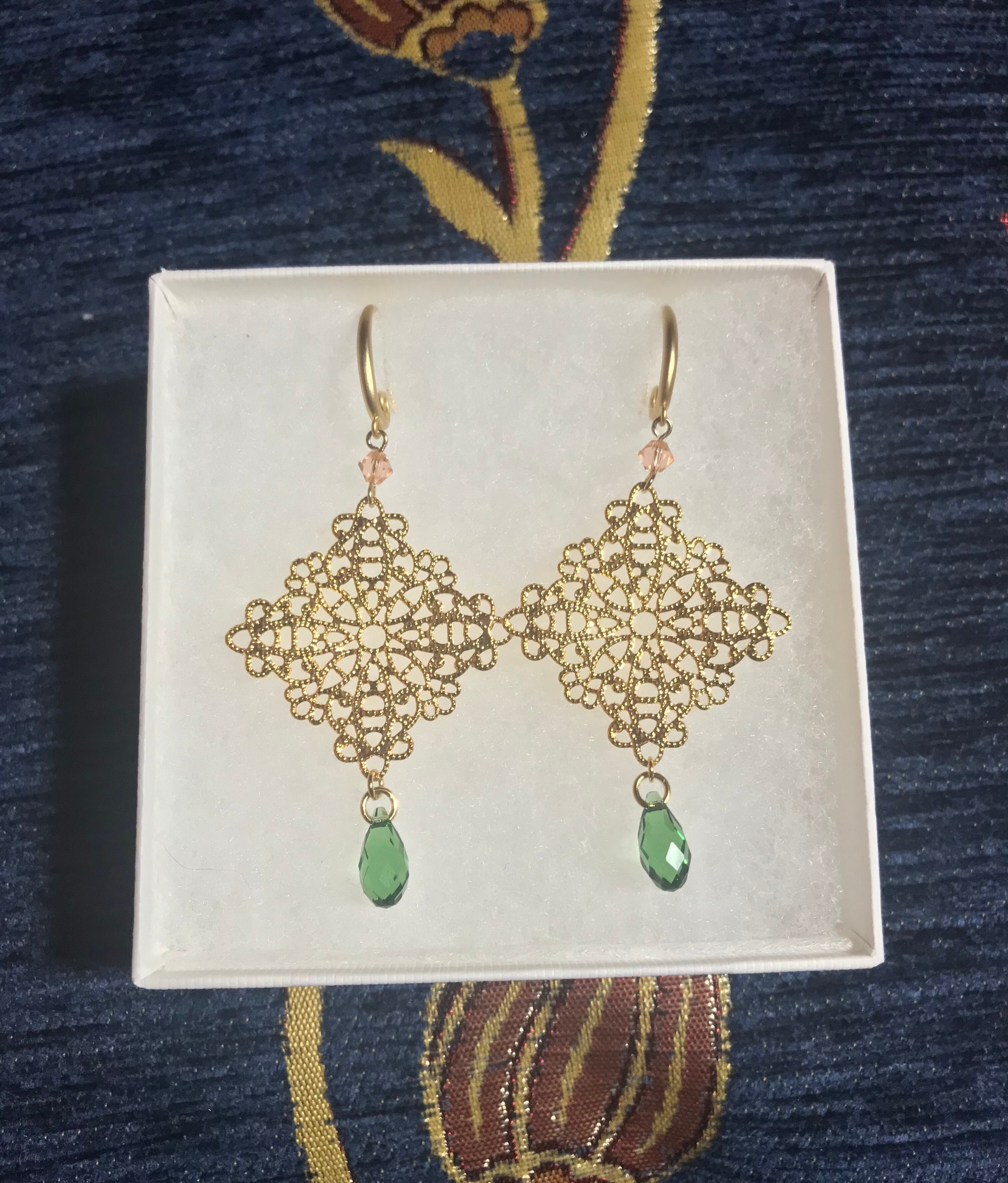 アラベスク柄のパーツにスワロフスキーを合わせました。
