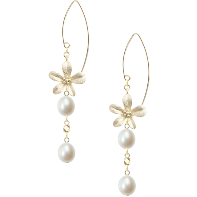 花とパールのカジュアルピアス〜シンプルスタイル〜