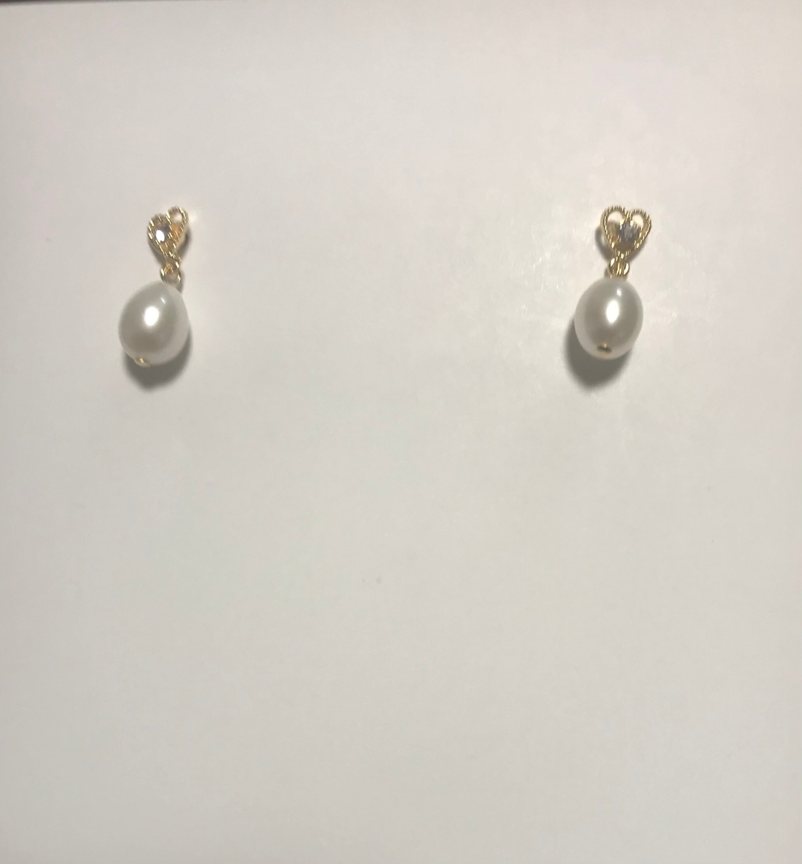 ハート型のチタンピアスと淡水パールを合わせたシンプルなピアス。