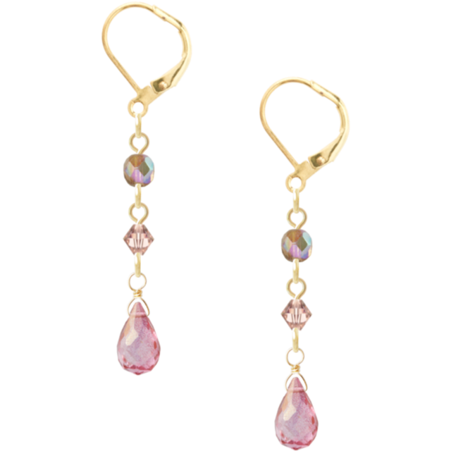 天然石とチェコビーズ、スワロフスキーを合わせた綺麗めピアス。